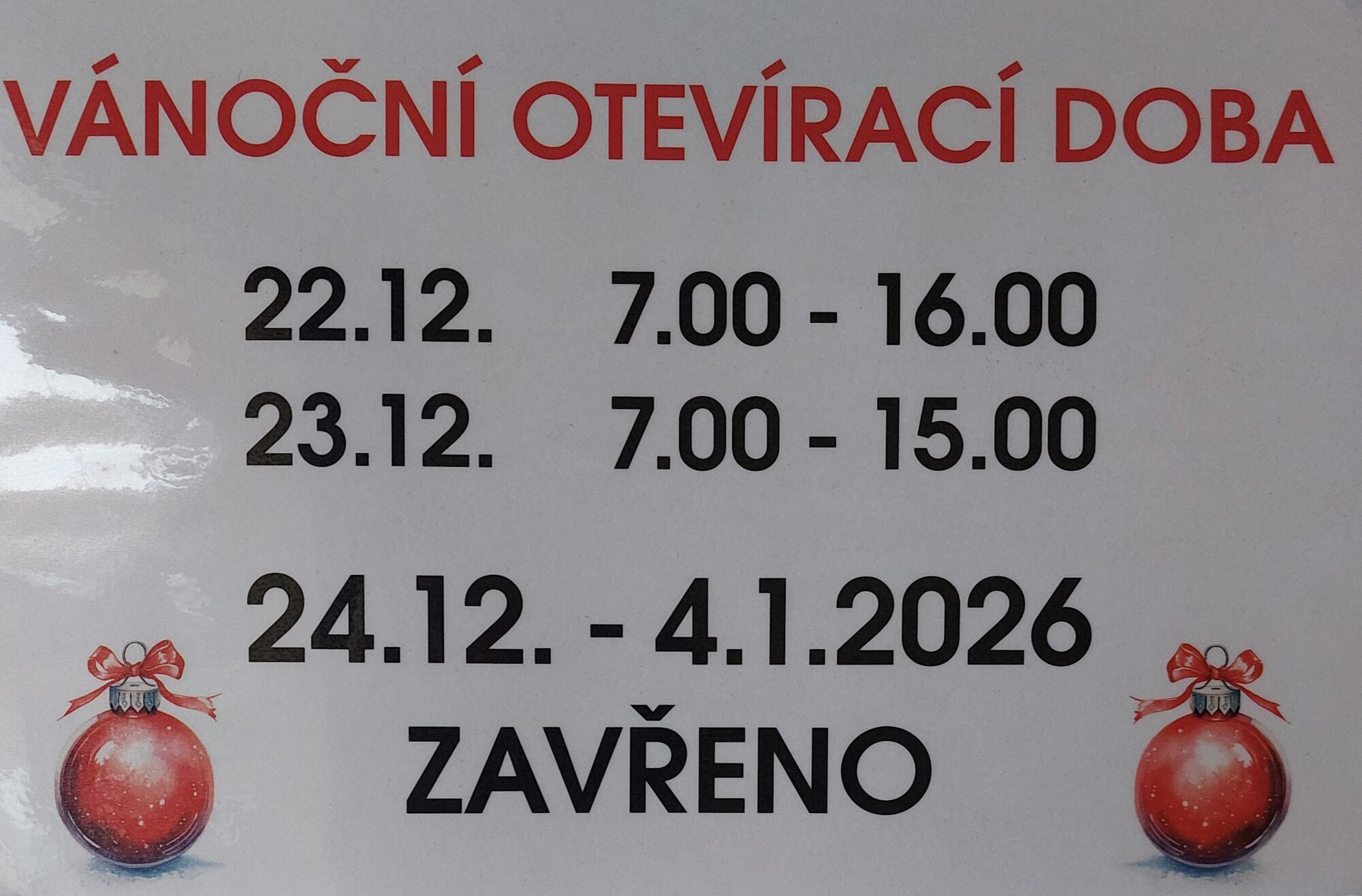 VÁNOČNÍ OTEVÍRACÍ DOBA 2025